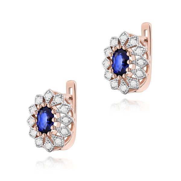 Cercei Aur 14K cu Safir 1.40 ct si Diamante Naturale Naturale 0.20 ct