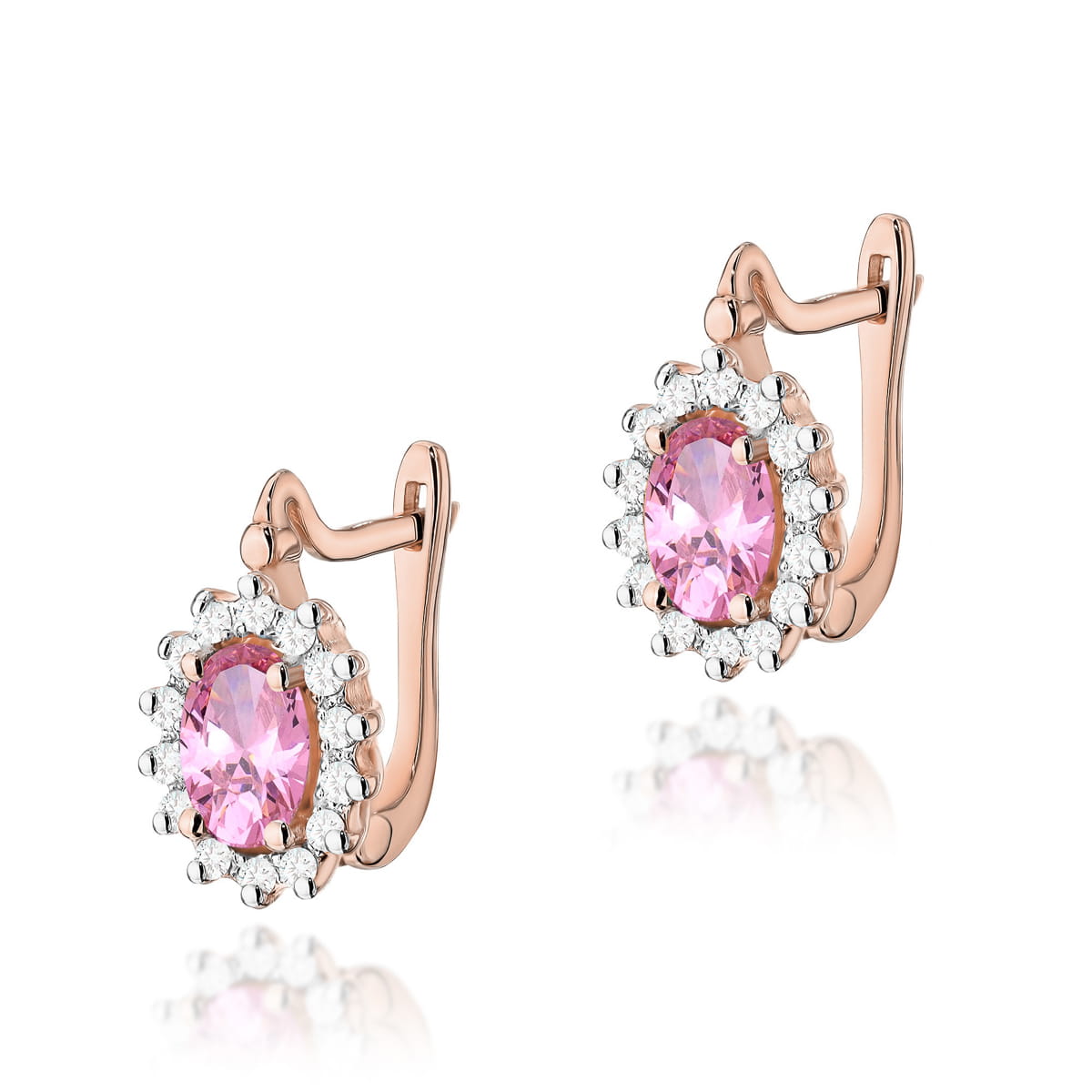 Cercei Aur 14K cu Topaz Roz 1.00 ct si Diamante Naturale 0.24 ct.