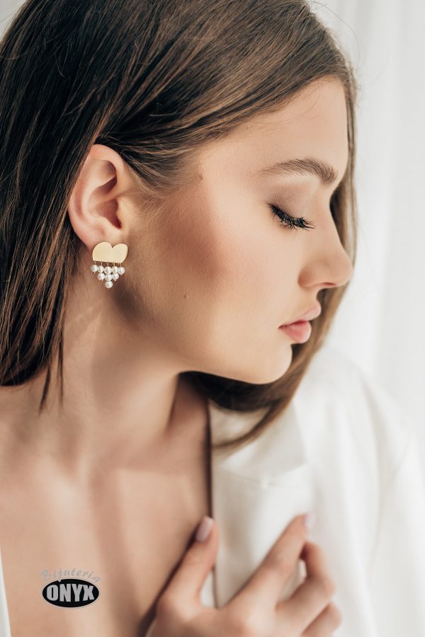 Cercei din aur galben cu perle