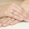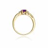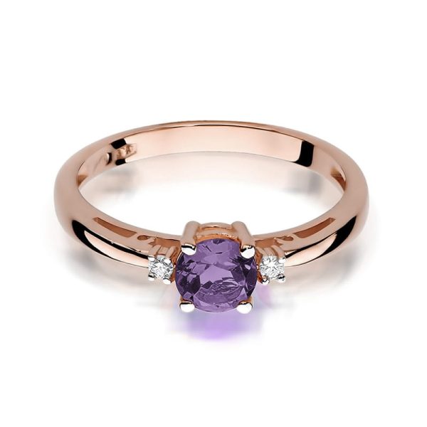 Inel Aur 14 K cu Ametist 0.50 ct, Diamante 0.03 ct Piatra centrala: Ametist 0.50 ct Pietre laterale: 2 Diamante de 0.015 carate, Culoare H, Claritate Si2 Greutate: 1.70 gr – 2.50 gr Latimea sinei: aprox. 1.70 mm Inaltimea coroanei: 4.9 mm Inelul vine insotit de Certificat de Calitate si Conformitate si cutie profesionala cadou.