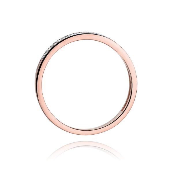 Inel Aur 14 K cu Diamante 0.09 ct Contine 17 Diamante de 0.005 ct, Culoare H, Claritate Si Greutate: 1.05 gr – 1.50 gr Latimea sinei: 1.90 mm Inelul vine insotit de Certificat de Calitate si Conformitate si cutie profesionala cadou.
