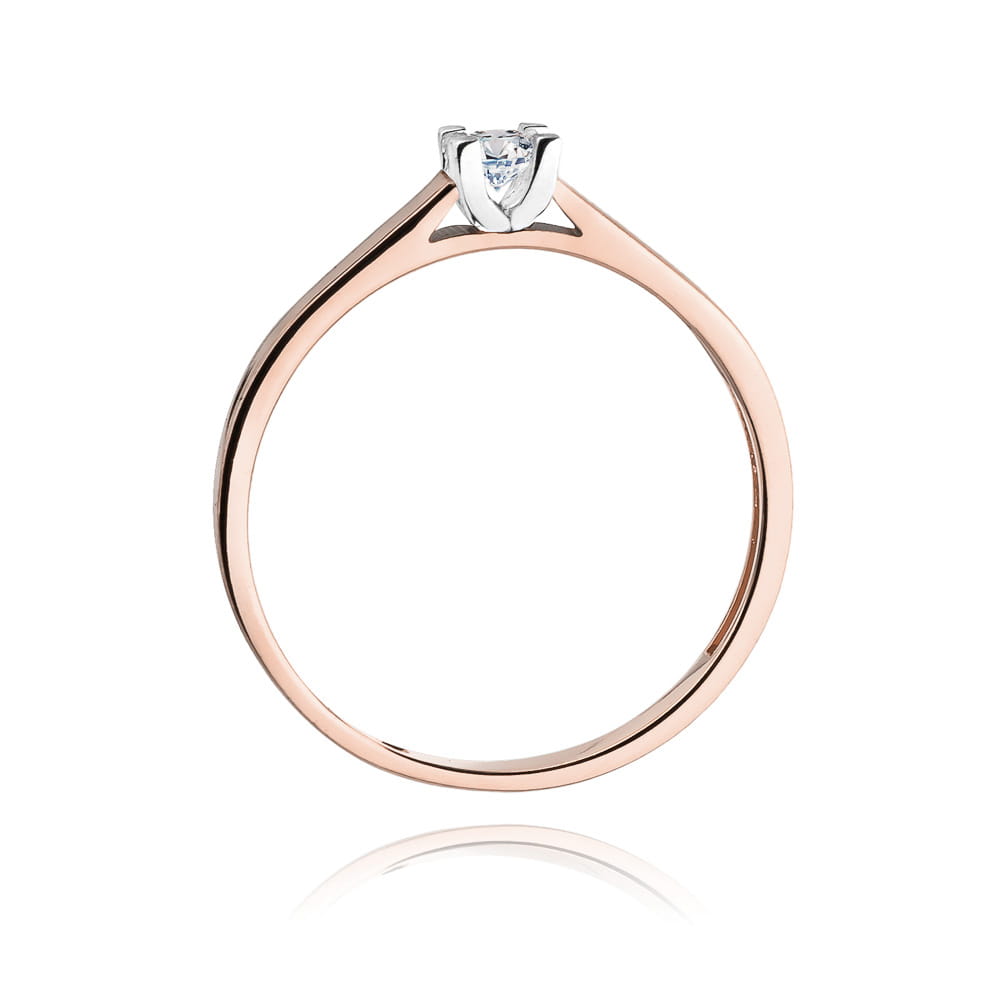 Inel Aur 14 K cu Diamant 0.10 ct Contine un Diamant de 0.10 ct, Culoare H, Claritate Si2 Greutate: 1.20 gr – 1.60 gr Latimea sinei la coroana: 2.15 mm Inaltimea coroanei: 3.45 mm Inelul vine insotit de Certificat de Calitate si Conformitate si cutie profesionala cadou.