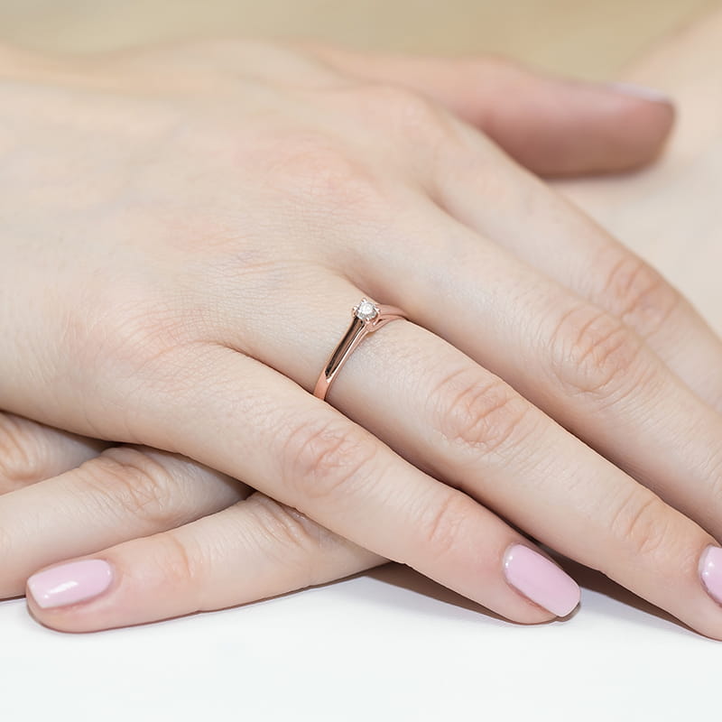 Inel Aur 14 K cu Diamant 0.10 ct Contine un Diamant de 0.10 ct, Culoare H, Claritate Si2 Greutate: 2.10 gr – 2.50 gr Latimea sinei: 2.7 mm Inaltimea coroanei: 4.1 mm Inelul vine insotit de Certificat de Calitate si Conformitate si cutie profesionala cadou.