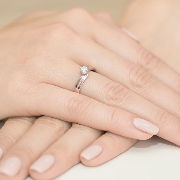 Inel Aur 14 K cu Diamant 0.30 ct Contine 1 Diamant de 0.30 carate, Culoare H, Claritate Si Greutate: 2.10 gr – 2.50 gr Latimea sinei: aprox. 2.95 mm Inaltimea coroanei: x5.05 mm Inelul vine insotit de Certificat de Calitate si Conformitate si cutie profesionala cadou.