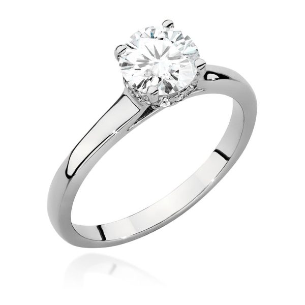 Inel Aur 14 K cu Diamant 1.0 ct Piatra centrala: Diamant 1.0 ct Pietre laterale: 0.07 ct H/Si (14 x 0.005 ct) Greutate aproximativa: 2.80 gr – 3.20 gr Latimea sinei: aprox.: 2.75 mm Inaltimea coroanei: 4.95 mm Inelul vine insotit de Certificat de Calitate si Conformitate si cutie profesionala cadou.