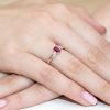 Inel Aur 14 K cu Garnet 0.70 ct, Diamante 0.03 ct Piatra centrala:Garnet 0.70 ct Pietre laterale: 6 Diamante de 0.005 carate, Culoare H, Claritate Si2 Greutate: 1.60 gr – 2.00 gr Latimea sinei: 2 mm Inaltimea coroanei: 6.5 mm Inelul vine insotit de Certificat de Calitate si Conformitate si cutie profesionala cadou.