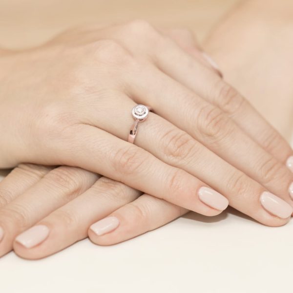 Descoperă eleganța atemporală a inelului W0294, o bijuterie rafinată, perfectă pentru a celebra momente speciale. Realizat din aur galben de 14K, acest inel îmbină perfect frumusețea clasică cu o notă modernă, fiind o alegere ideală pentru orice ocazie. Greutate totală diamante: 0.25ct Piatră centrală: Diamant Cultivat Forma pietrei centrale: Rotundă Culoare metal: Aur Galben Greutate totală: 2.4 – 2.8g Calitate piatră centrală: VS2 F Greutate piatră centrală: 0.25ct Dimensiuni piatră centrală: 4.4mm Carataj Aur/Puritate: 585 Fiecare inel este realizat cu o atenție meticuloasă la detalii, asigurând o calitate superioară și o durabilitate de excepție. Diamantul cultivat, cu tăietura sa impecabilă, strălucește cu o intensitate captivantă. Alege acest inel pentru a adăuga un strop de lux și rafinament colecției tale de bijuterii.