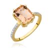 Experimentați eleganța atemporală cu inelul W527, o capodoperă rafinată din aur galben de 14K. Designul său sofisticat pune în valoare frumusețea radiantă a unui morganit de 2.80ct, în timp ce diamantele strălucitoare adaugă un plus de lux și strălucire. Acest inel este alegerea perfectă pentru a celebra momente speciale sau pentru a adăuga o notă de rafinament colecției dumneavoastră de bijuterii. Piatră centrală: Morganit Greutate piatră centrală: 2.80ct Pietre adiționale: Diamante Greutate totală pietre adiționale: 0.07ct Puritate Aur: 14K Model: W527 Dimensiuni piatră centrală: 10 x 8mm Calitate diamante: SI2 H Greutate totală: 3.1 – 3.6g Lățime bandă la coroană: 1.7mm Înălțime coroană: 7.2mm Fiecare inel este realizat cu o atenție meticuloasă la detalii, reflectând măiestria excepțională și angajamentul nostru față de calitate. Morganitul, selecționat cu grijă, este pus în valoare de diamantele strălucitoare, creând o armonie vizuală captivantă. Descoperiți frumusețea și eleganța acestui inel unic, menit să vă însoțească în cele mai importante momente.