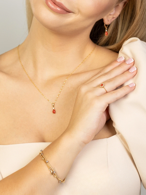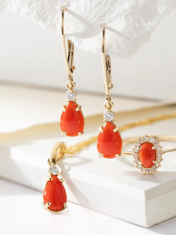 Pandantiv Aur 14K cu Coral 0.65 ct si Diamante Naturale