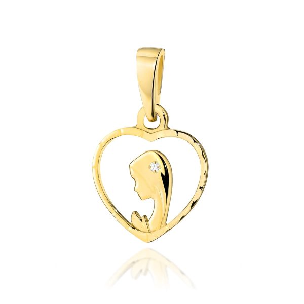 Pandantiv Aur 14K Fecioara Maria cu Diamante Naturale 0.005 ct